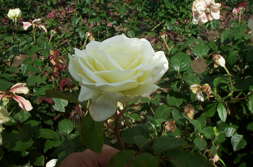 Godt fyldte store renhvide blomster. Velegnet til Afskæring.